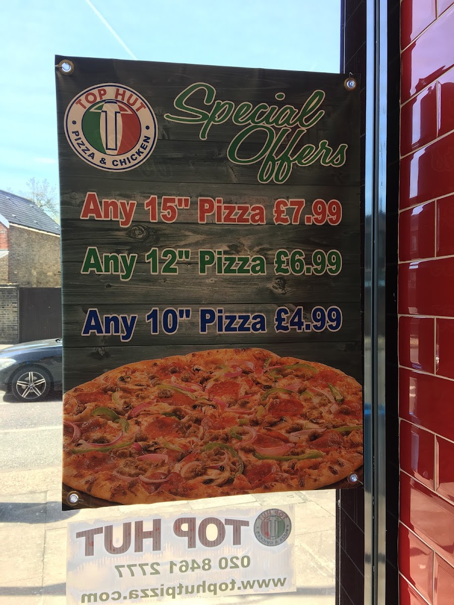 Introducing Top Hut Pizza & Chicken, your go-to destination for delectable takeaway in London. Located at 403 Hither Green Ln, this eatery boasts a menu richly laden with flavors that cater to every palate. Fans rave about their thin-crust pizzas, particularly noting the 18-inch pizza for just £13.99, which is a feast for the senses. Pair your pizza with addictive wings for a true gastronomic delight.